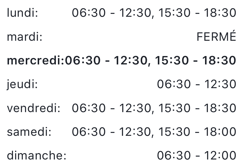 Horaires d’ouvertures